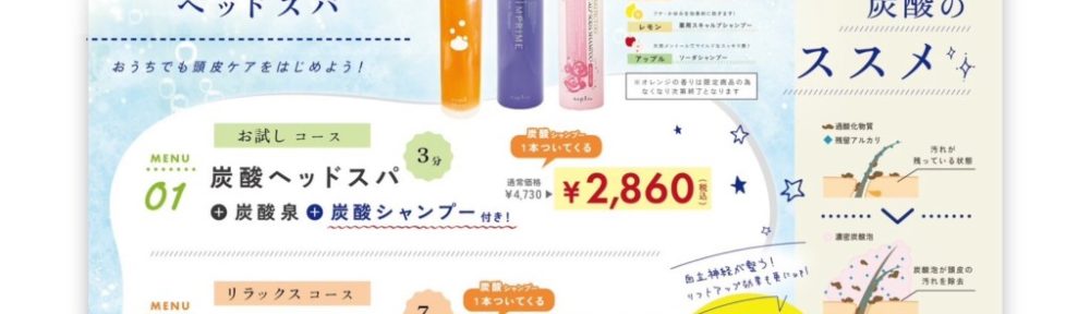 炭酸で頭皮と髪の汚れを落として健やかな頭皮を保ちましょう。